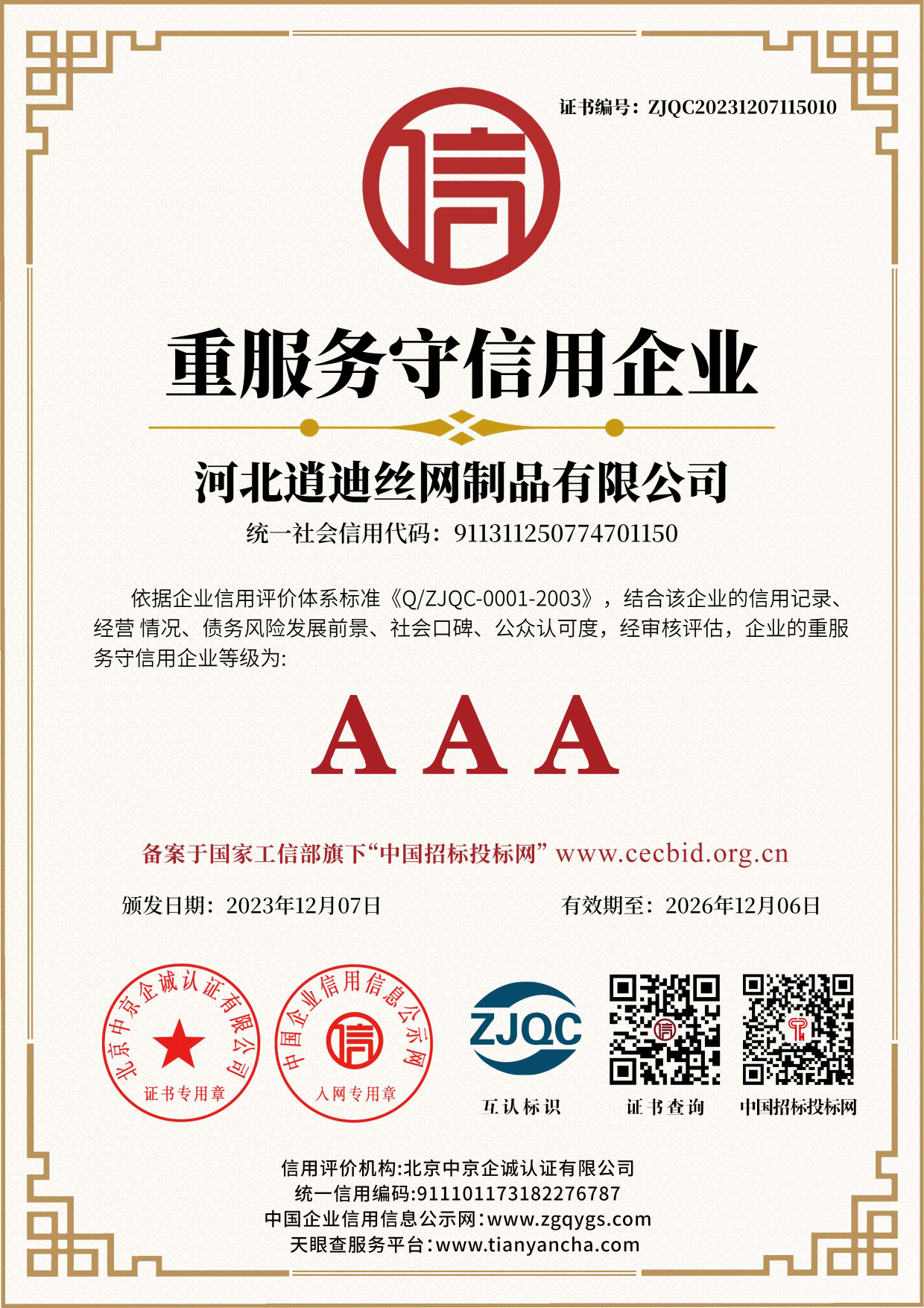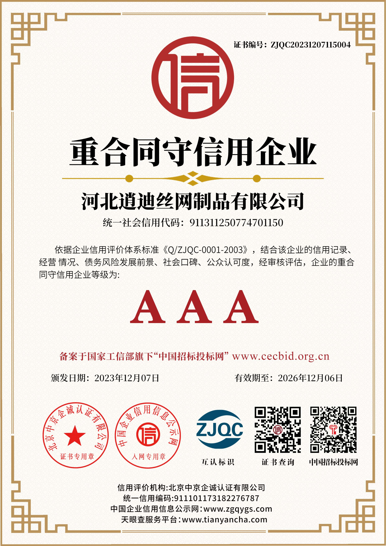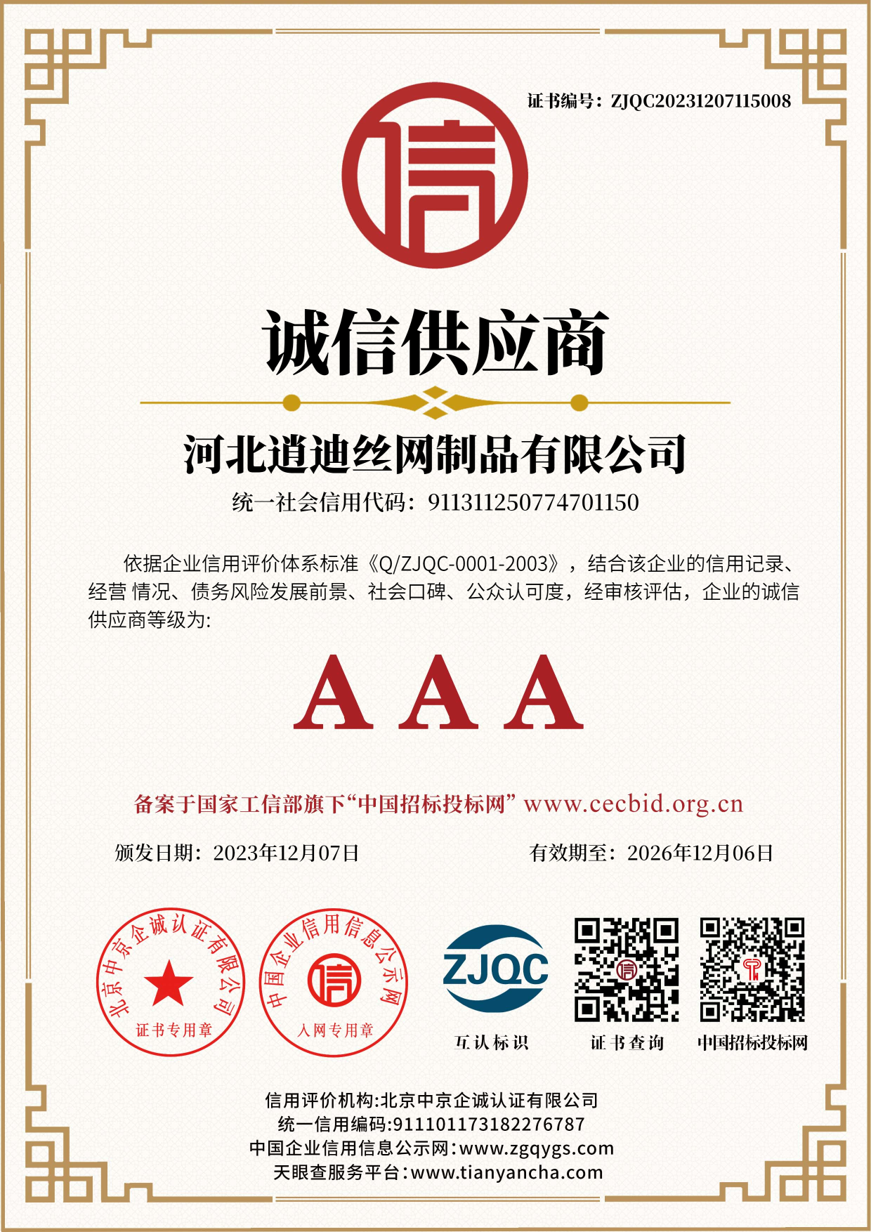 河北逍迪絲網制品有限公司誠信天下,誠信是我們公司一個原則問題不可撼動的,以心中有誠信的思想結交五湖四海的朋友,能達到雙贏是最好的,我們堅信朋友多了路好走,我們公司都是老朋友多,我們一直是這樣做的。河北逍迪絲網制品有限公司成立于2013年注冊資本壹仟伍佰萬整,主要生產沖孔網,鋼格板,金屬防蟲網,如實的實體廠家,是一家-研發(fā)-銷售-生產-安裝-售后一條龍公司,2019年通過了ISO 9001認證管理體系符合GB/T 19001-2016/ISO 9001:2015標準,同時通過了SGS認證,擁有商標版權2品牌,擁有一個著作版權,河北逍迪絲網制品有限公司位于中國有名的(絲網之鄉)安平縣,于天津,北京,雄安,石家莊相鄰,交通非常發(fā)達,出口可以選擇天津港口非常近每天都有接貨送貨往返車輛,空運可以選擇石家莊正定機場,附近也有鐵路運輸,當地還有兩個生態(tài)物流園區(qū)發(fā)往全國各地,我們沖孔網工廠生產設備有:普通沖壓機,高速沖壓機,自主研發(fā)小微孔沖壓機,龍門沖,磚塔沖孔,重型沖孔機,萬瓦級別激光切割機,3000W激光切割機,焊接設備,折彎機,校平機,剪板機,精密校平機,(對板面平整度要求苛刻的客戶群體0.5-0.2誤差)我們公司銷售市場沒有局限性國內國外都供應,擁有出口權...
